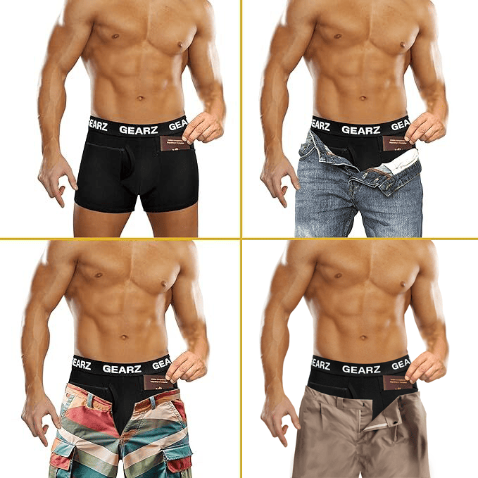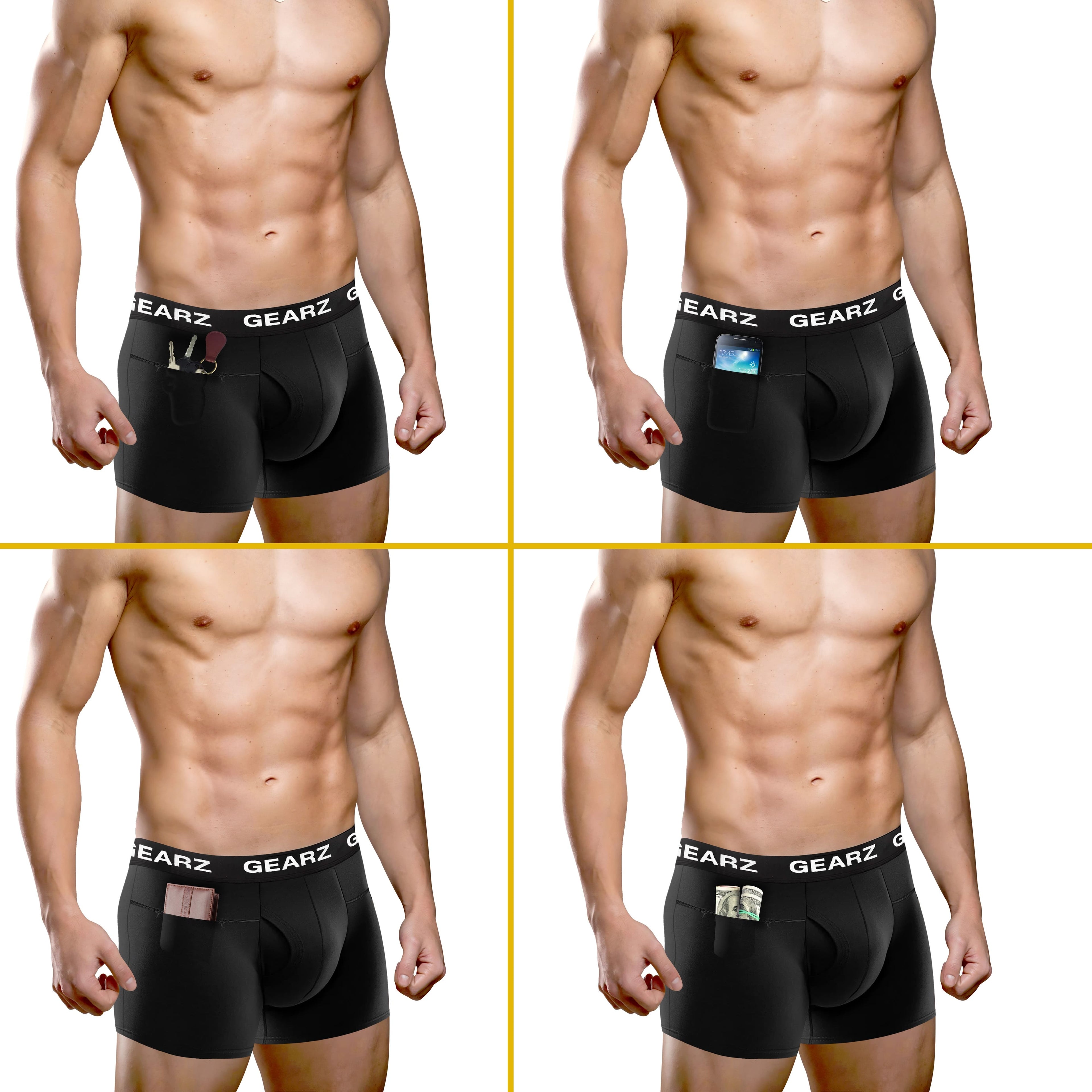 Introducing GEARZ boxer briefs, specially designed to protect your valuables from pickpockets and accidental loss. With two spacious zippered pockets (6.7”x 5.5”) featuring double closures, you can discreetly store your essentials while navigating busy public transport or traveling.